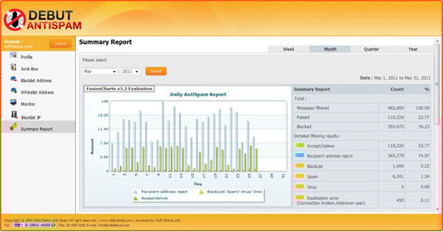 เป็นระบบป้องกัน Virus และ Spam สำหรับระบบอีเมล์ ที่มีความแม่นยำในการตรวจจับสูง สามารถตรวจจับไวรัสที่แฝงในเมล์และไฟล์แนบและกำจัดทิ้งได้ก่อนที่ไวรัสดังกล่าวจะถึงเมล์ เซิร์ฟเวอร์ของท่าน สามารถลดจำนวนอีเมล์ขยะที่ท่านไม่ต้องการให้เข้าสู่ระบบเมล์ของท่าน ลดปริมาณการใช้งานอินเทอร์เน็ตที่ไม่จำเป็น โดยระบบจะกักเก็บอีเมล์ขยะ ที่ถูกกรอง ไว้ให้ ท่านสามารถตรวจสอบได้ ท่านจึงมั่นใจได้ว่าจะไม่มีอีเมล์ใดๆ สูญหาย นอกจากนี้ท่านยัง กำหนดอีเมล์แอดเดรสหรือโดเมนที่ไม่ต้องการ รับอีเมล์ หรือไม่ต้องการให้ระบบกักไว้ได้ ทำให้ท่านสะดวกในการจัดการระบบ ช่วยลดเวลาและค่าใช้จ่ายในการจัดเตรียมและดูแลระบบ นอกจากนี้ยังช่วยลดค่าใช้จ่ายอันเกิดจากปริมาณการใช้งานอินเทอร์เน็ตได้อีกด้วย