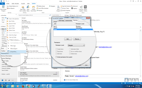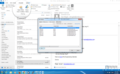 ZCO brings your users a new and powerful collaboration feature: they can share mail folders with different privileges with different coworkers. Sharing roles are read-only, read/write and administrator.